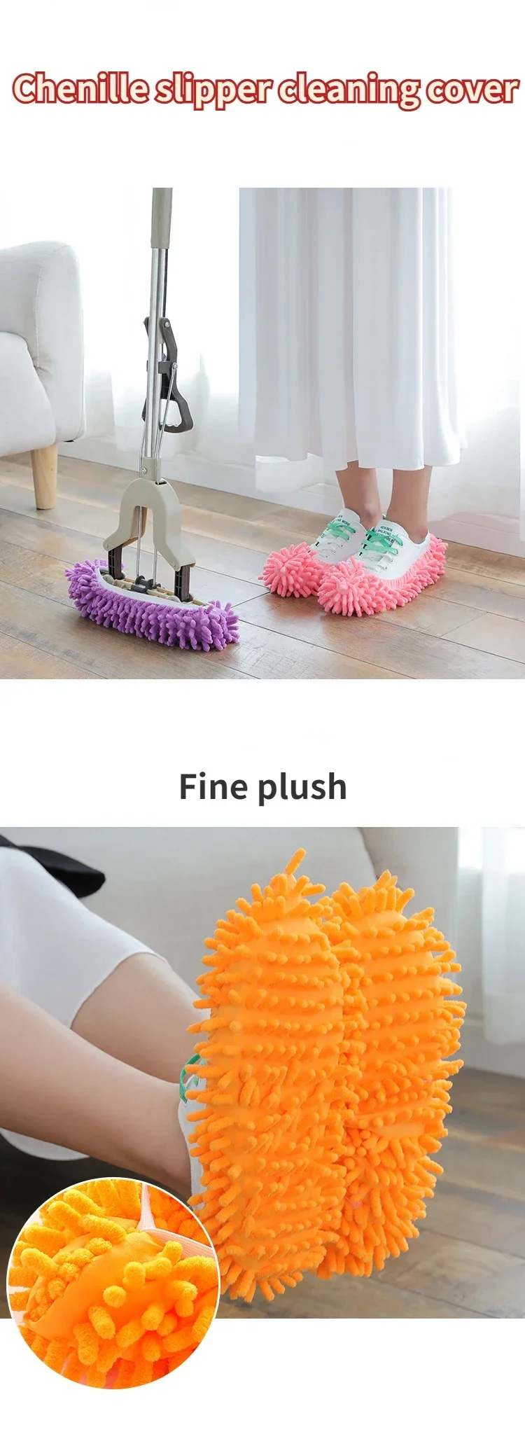 2PCS Chenille Dust Mop Slippers Foot Socks Mop Multi-Function Floor Cleaner Lazy Shoe Cover Hair Collector Home Cleaning Tools