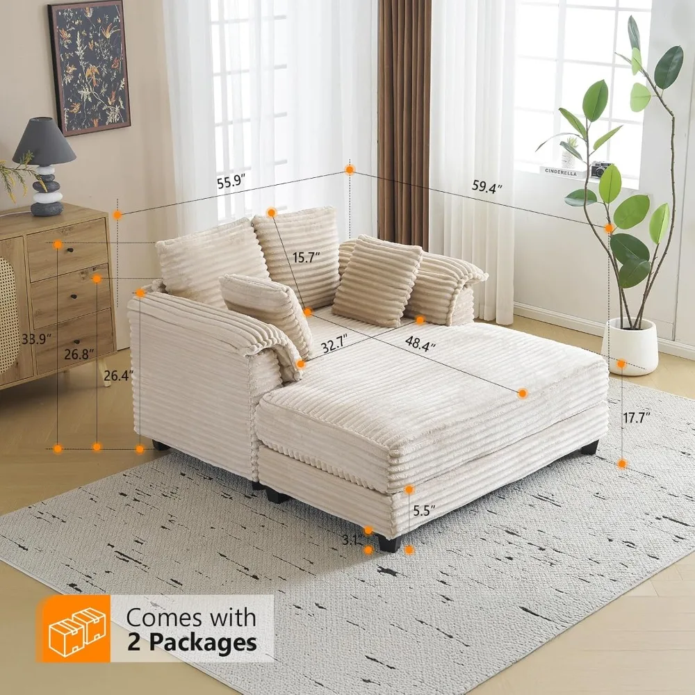 - Tips Before Purchasing--1.Oversized Chair comes in two packages; 2. Before purchasing, please kindly measure the space to ensure the chaise could be fitted into in case any unnecessary return occurs, which will cause a high return charge; 3. Dimension: 55.9"W×59.4"D×33.9"H. Load Capacity: 600lbs/272kgs.