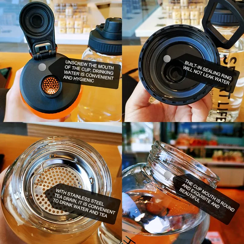 This creative water bottle is the ideal companion for your outdoor activities. Made of high-quality glass material, ensuring your drinking water always maintains a fresh and pure taste. Not only does it have a stylish appearance, it also has excellent durability and is suitable for various outdoor sports such as hiking, camping, and climbing.